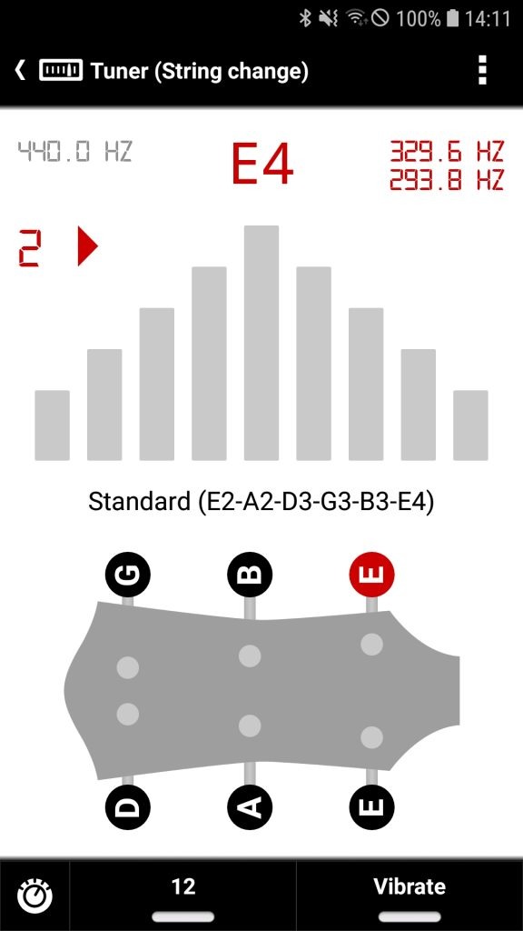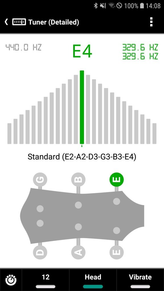 - Vibration feedback is available when the correct note is hit – perfect for hands-free tuning. (Note: this may slightly affect pitch detection.)